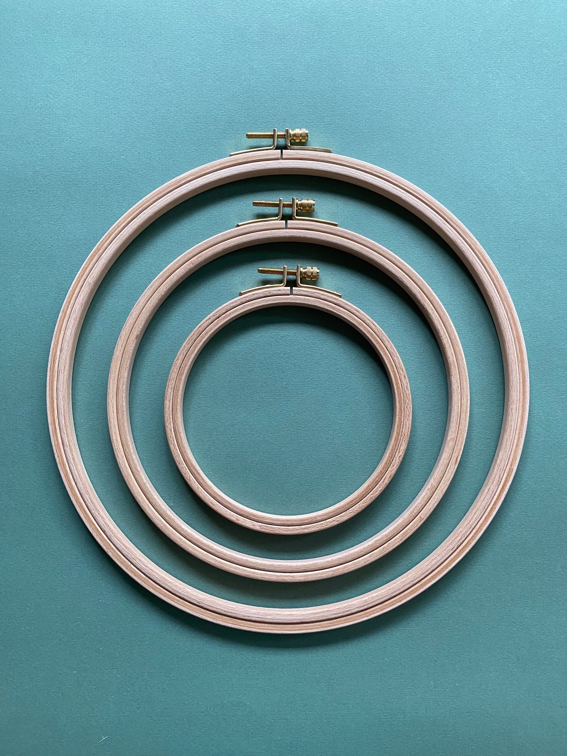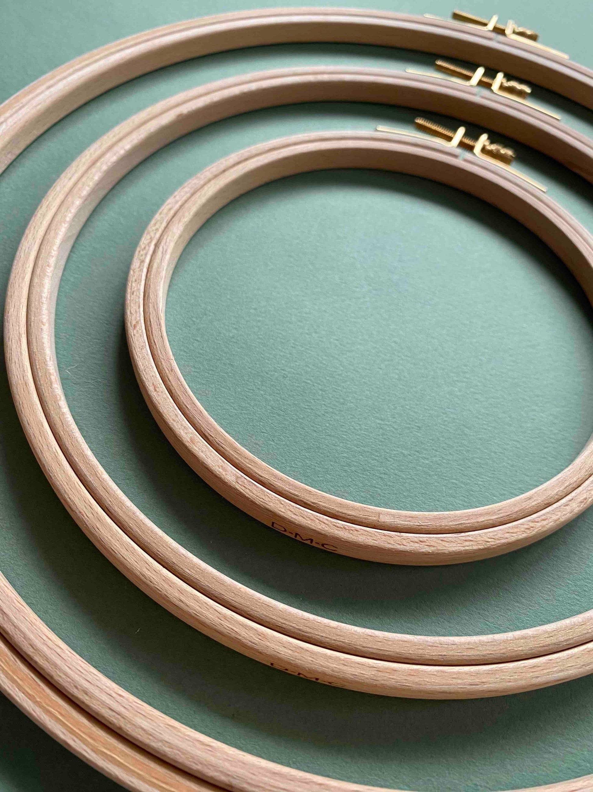 Broderiringe i træ er fra DMC og i super lækker kvalitet.