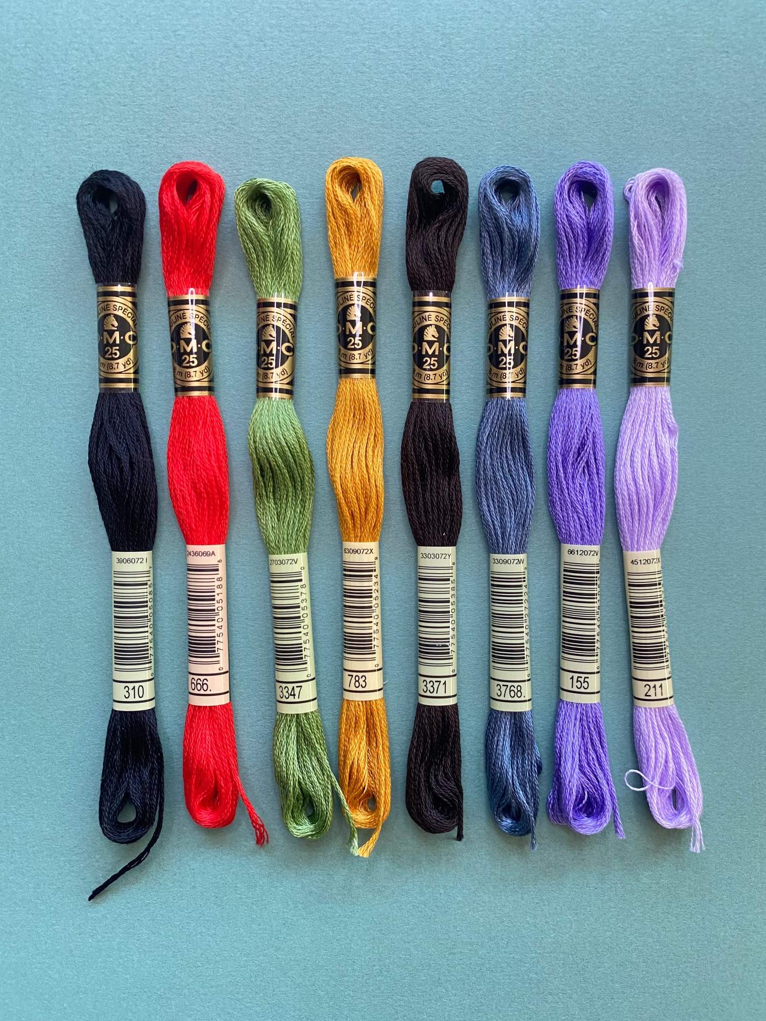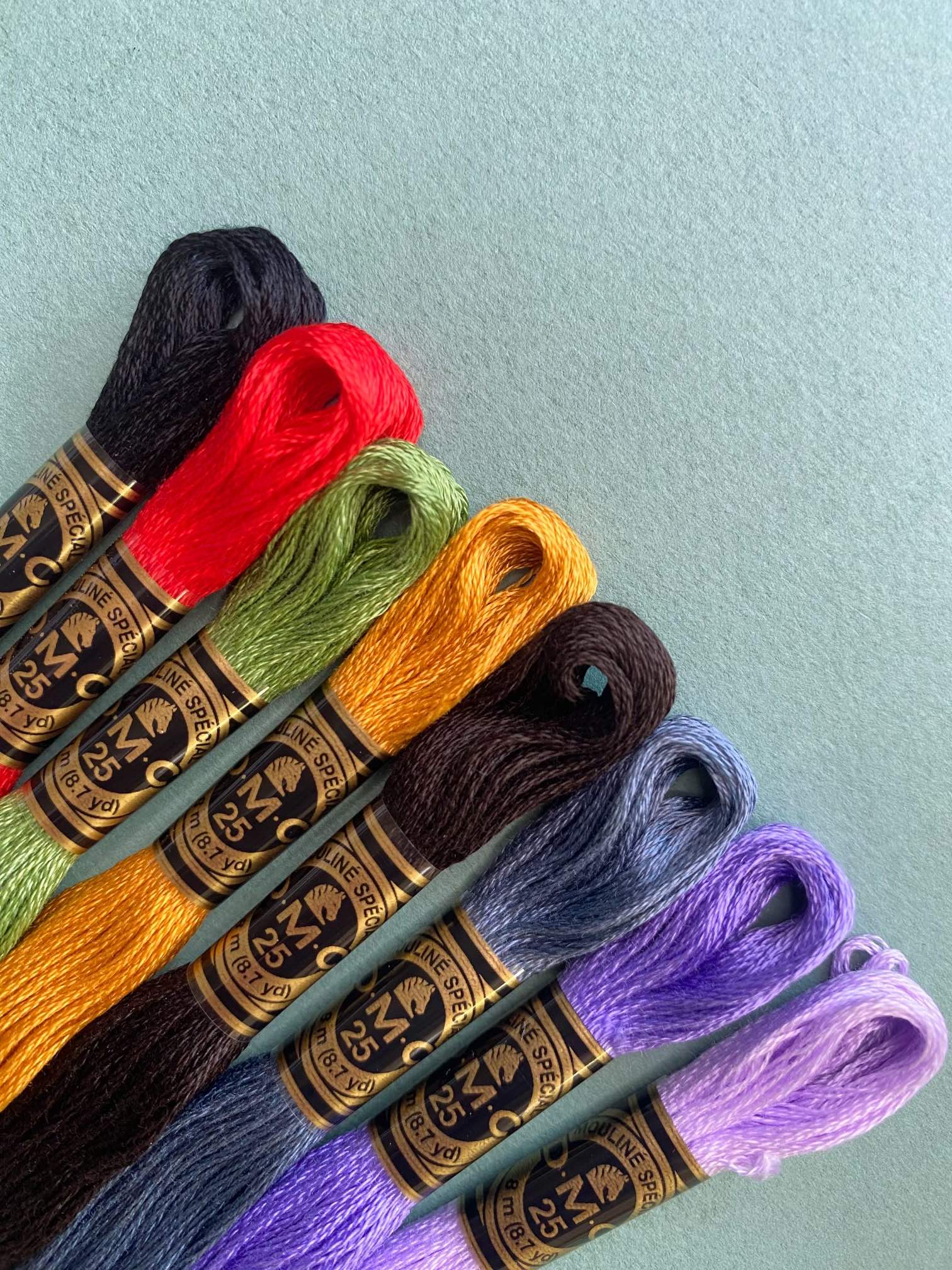 Denne garnpakke er sammensat så den passer til Stick & Stitch motiverne i Flora pakken. Pakken indeholder 8 dukker moulinégarn fra DMC.