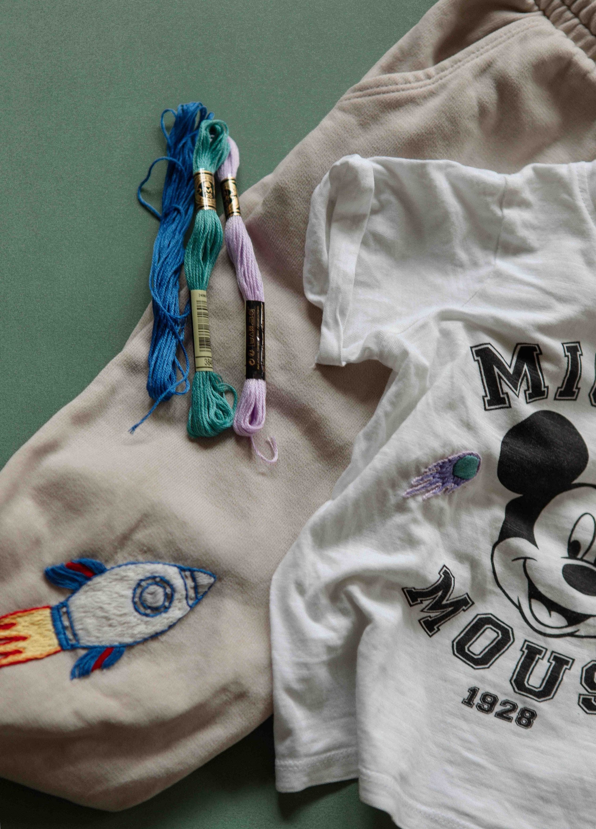 - Fjern den aftagelige film og påfør broderimotivet med den klæbende side på dit tekstil.