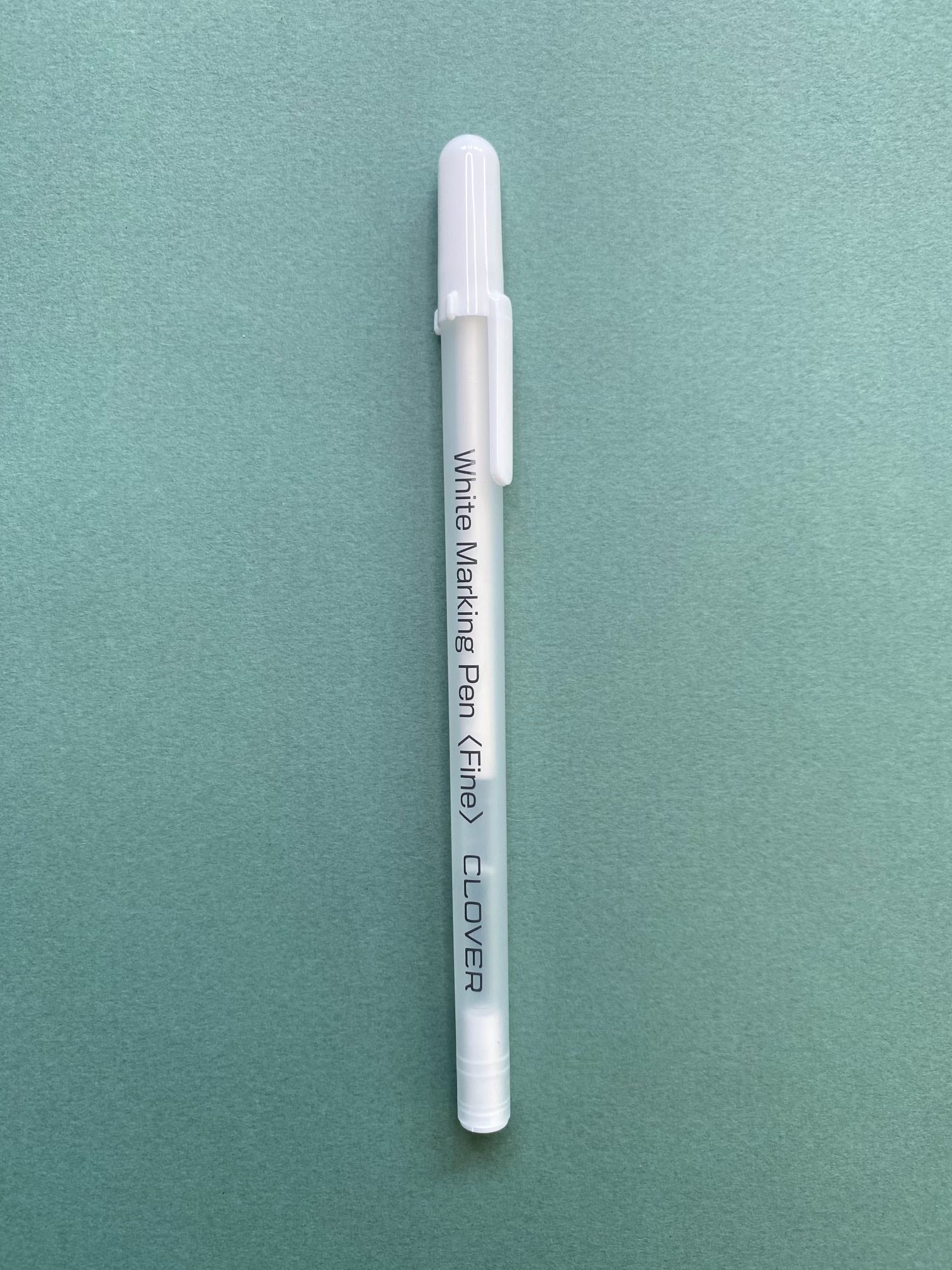 Hvid tekstilpen, som forsvinder ved varmen fra en strygejern. Tekstilpennen er nem at tegne med. Den er gennemsigtig i begyndelsen, men når den tørre op bliver den hvid. Pennen er god til at tegne med på mørke tekstiler.